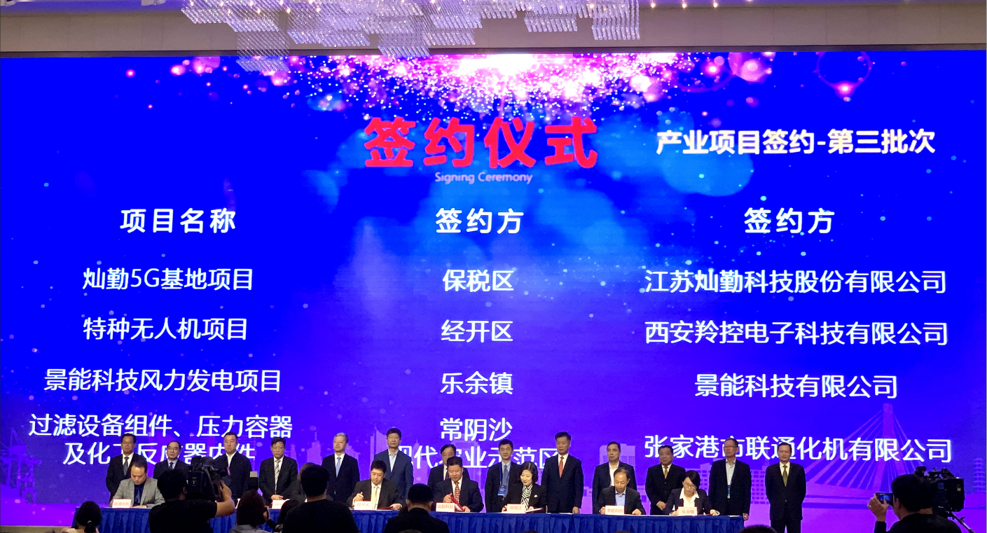 2019年11月2日上午,江苏灿勤科技股份有限公司的"灿勤科技园"项目暨"灿勤5G基地项目"作为张家港重点项目之一,与保税区管委会正式举行签约仪式,我司董事长朱田中先生受邀出席本次签约仪式。